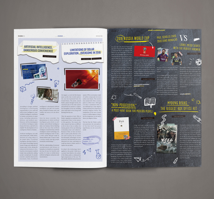 고등학교 영자신문 만들기의 특화되어 있는 디자인빛 입니다.