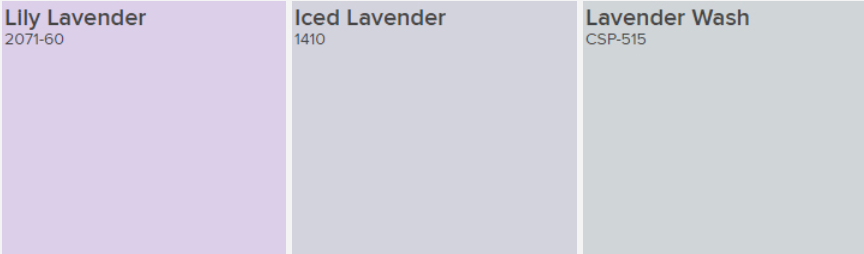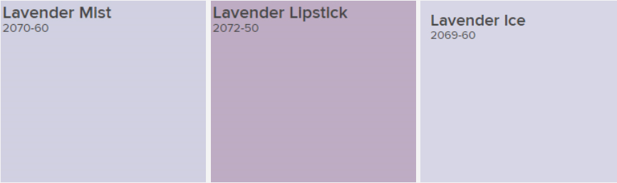 심지어 팬톤과 벤자민무어의 라벤더들은 겹치는 이름도 없네요!