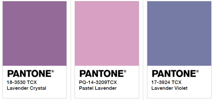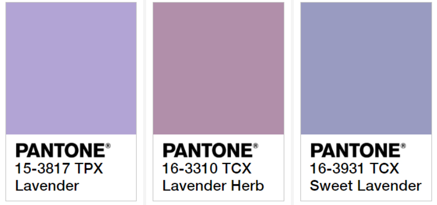 하지만 라벤더 색의 종류는 어마어마하게 많아요. 팬톤 컬러 시스템 안에서만 해도 다음과 같은 라벤더들이 있답니다.