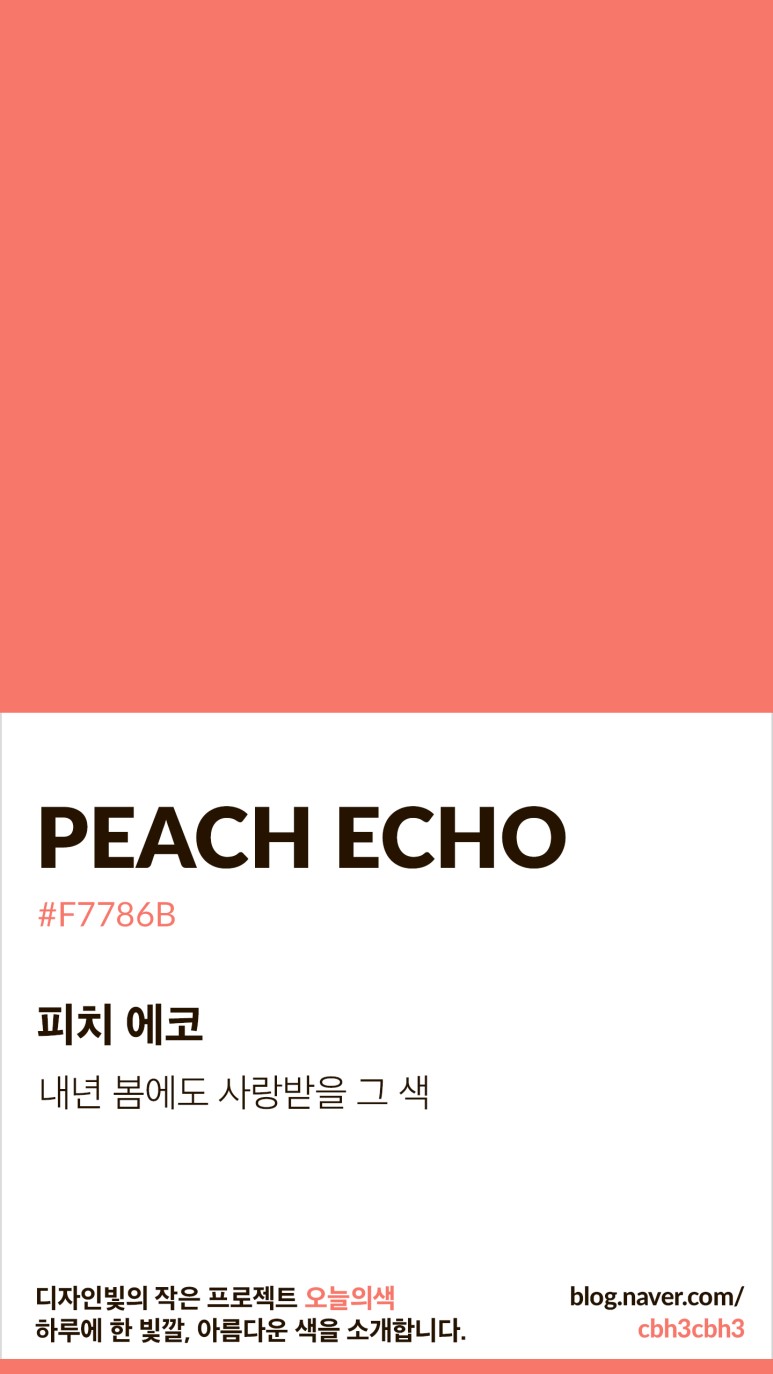 디자인빛이 선정한 오늘의 색은 '피치에코Peach Echo'입니다. 팬톤이 선정한 2016년 봄의 색으로 인기가 많았었죠?