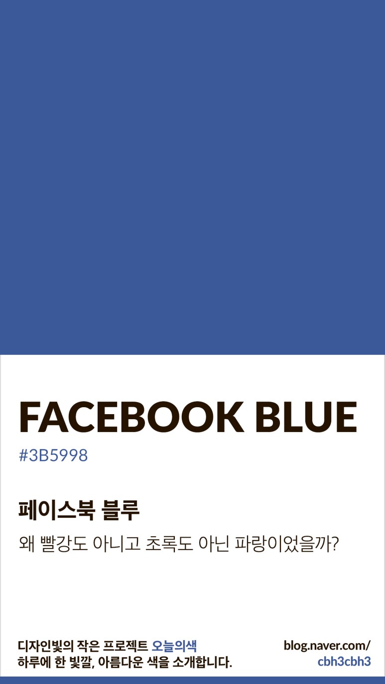 오늘 디자인빛이 소개해드릴 색은 페이스북의 브랜드 컬러인 '페이스북 블루facebook blue'입니다.