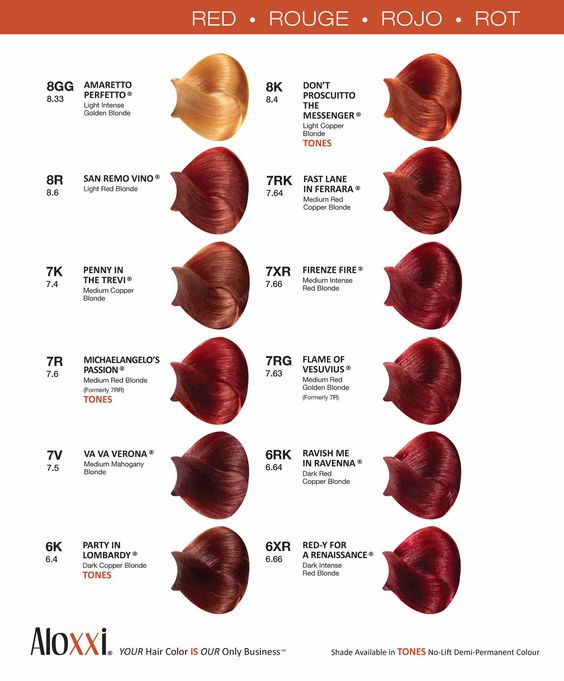 이 이미지는Aloxxi의 헤어 염색약 견본인데요. 베수비오의 불꽃이 당당하게 붉은 계통 색상이름에 올라 있는 걸 보실 수 있습니다...! (다른 색상 이름도 재미있네요ㅋㅋ)