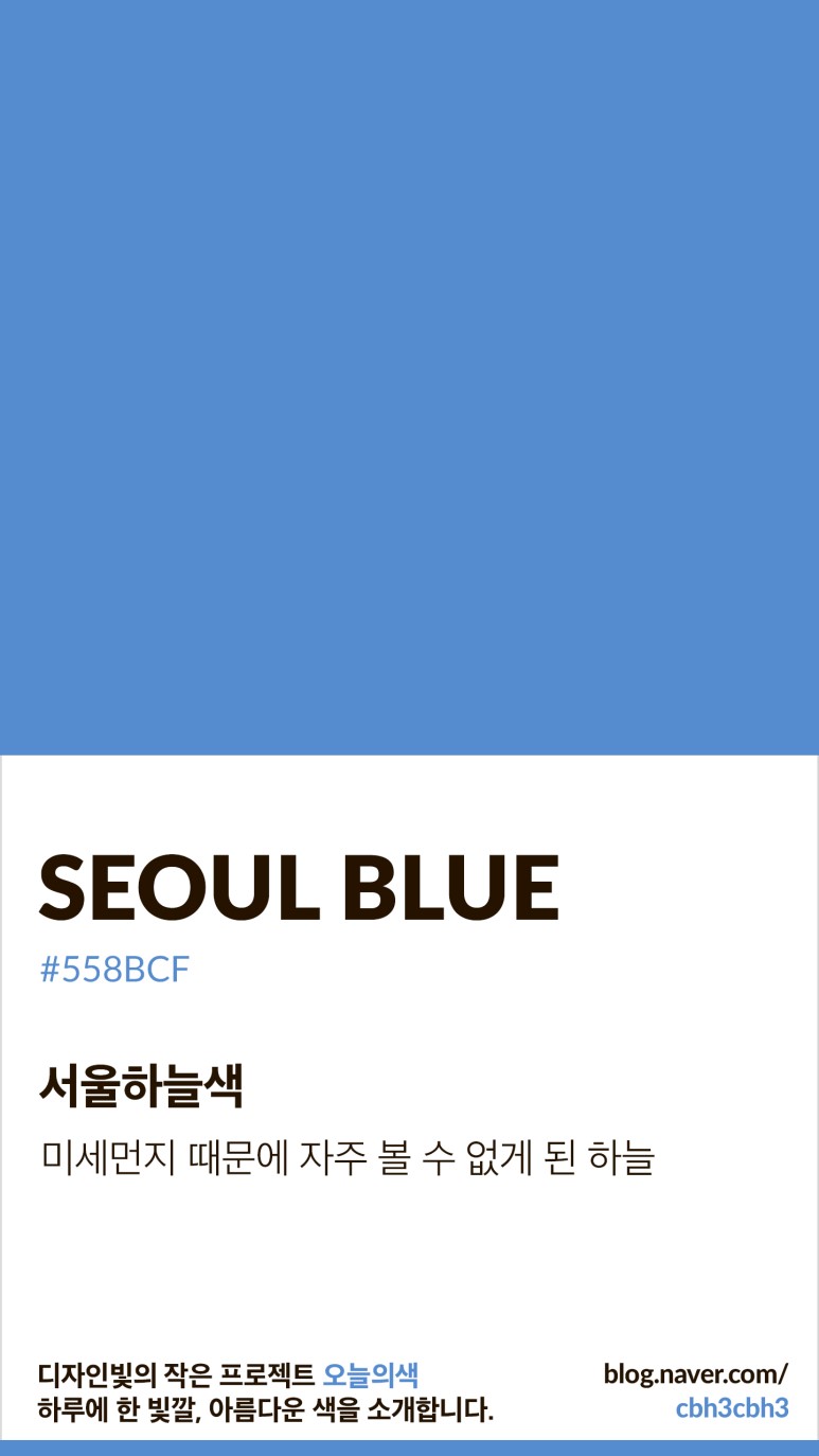 안녕하세요! 오늘 디자인빛이 소개해드릴 색은 '서울하늘색SEOUL BLUE'입니다.