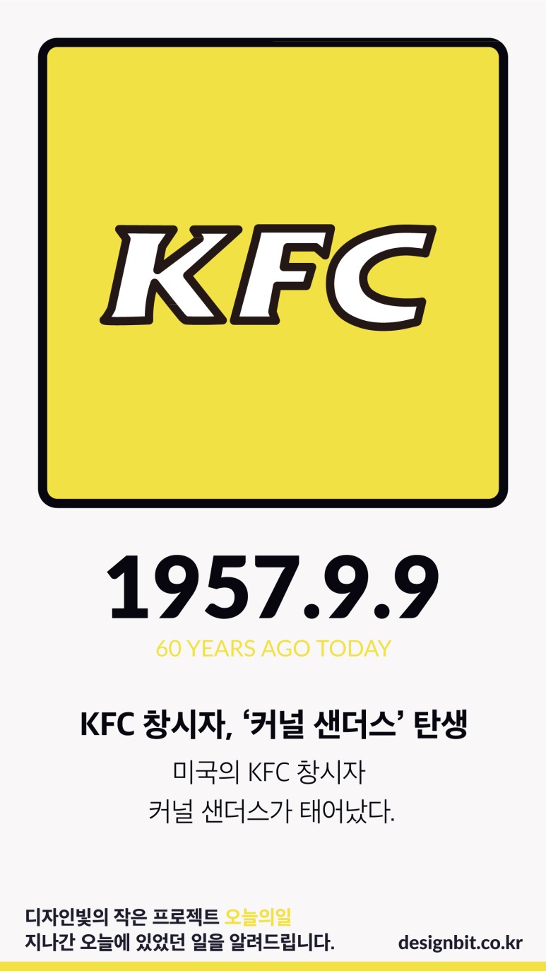 우리가 먹고있는 KFC의 창업자 "커널 샌더스"가 1957년 9월 9일 태어났습니다.